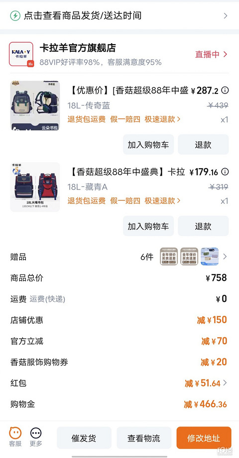 下午干了一件大事,下单了小阮上小学第一个书包,凑单好烧脑呀!不晓得他喜欢哪个,直接买了2个,到时候留下喜欢的,退掉一个不喜欢的 大V直播间和官方直播间直接也是有差价的,凑单凑得好,感觉省100元呀 小阮爸爸说,需要买这么贵吗?想着要用到3年级的吧,用三年,不贵不贵当年咱们的书包就几十块钱吧现在就一个小孩嘛,可以适当用得贵点。准小学生们,书包可都安排上了?
