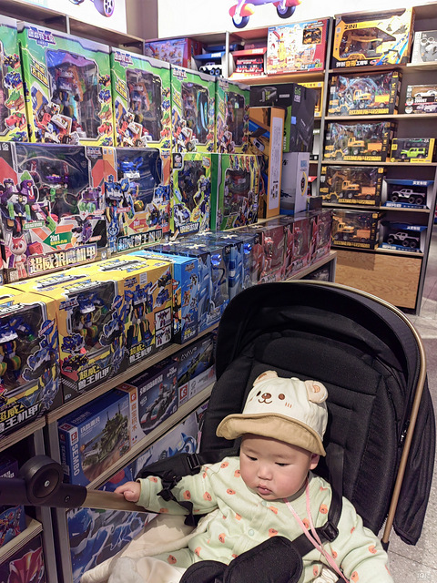 我的小关关已经九个月了,想看看他会不会喜欢什么玩具,带他去了一家比较大的玩具店,我自己这么大都没逛过玩具店呢,托儿子的福啊,真的是什么都有啊,琳琅满目,眼睛都看花了,儿子看啥都是没啥感觉,最后看见一个恐龙拿着笑,那就满足他买一个吧。