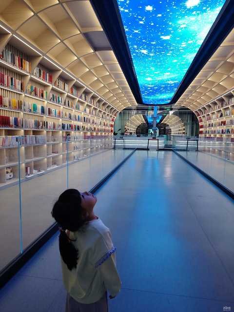 去和合公园的时候,突然发现地下还有个图书馆,是用机械臂取书的,很高级没懂怎么操作[/11笑哭],这星空顶拍照真的超级好看。边上的投影在放动物世界,娃坐着看了半个小时还不肯走。