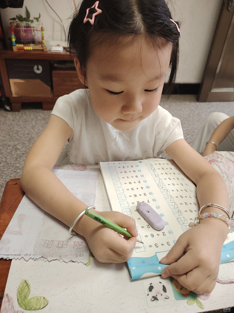 暑假两个月,天天跟着上班也不行,送去外婆家住一段时间,也是每年为数不多能和姐姐一起玩的日子。刚和姐姐聚到一起,粘的不行,连写作业都要挤在一起。之前太放松了,认字、算数什么都没学,这个暑假不得不开始学习。就这一页算数做了半个小时,手指掰来掰去地算,连头发都抓乱了[/11捂脸][/11捂脸][/11捂脸]姐姐花了好几天拼好的大拼图,她也想试试,硬是拆了一小块让她拼,做作业不好玩,玩拼图倒是挺积极的。