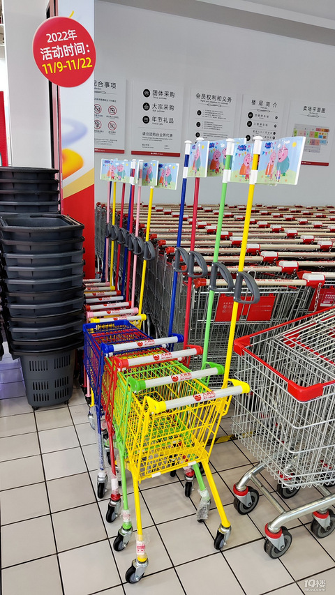 前阵子就看到大润发有儿童推车,我也没注意看。娃看到一直想要推。五颜六色的小推车,娃终于推上了,还是娃最爱的小猪佩奇。
