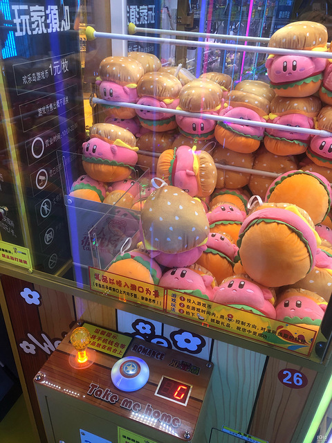 其实宝龙,我们没有一家一家的好好逛过。真的逛起来,其实有好多家可以打卡的。快乐岛里面有娃娃机,跳舞机,老虎机......女儿喜欢夹那个汉堡,可惜夹了3次都没夹住,不好夹,饮料一瓶也没夹住。 想要这个汉堡想要饮料,太难 打卡了