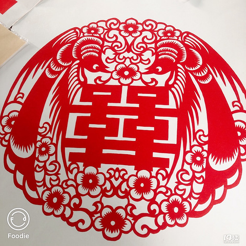 剪窗花,剪喜字,是需要很有耐心的,而且要不断的练习,任何一项非遗的传承人都花费了很多精力和时间,从小学习,耳儒目染。 让小朋友学剪喜字,一开始还很喜欢折纸的,后来都跟不上老师的步骤了,没想到一张小小的红纸一把剪刀就能变成这么多漂亮的图案,太神奇。