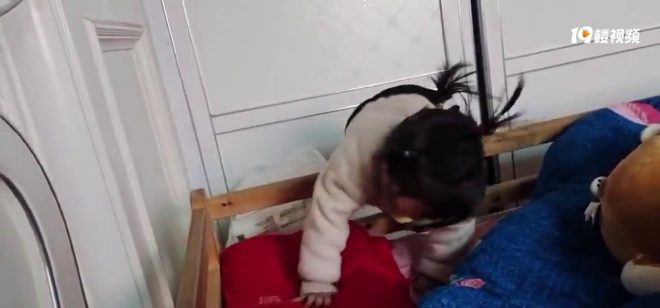 姐姐的侍寝小狗从床头掉下去了。姐姐伸手利落的翻身下床,动作娴熟的钻进床底去捡。妹妹在床边围观一会儿,跃跃欲试,马上付诸行动,结果卡住,不上不下。最后把姐姐当垫脚石下去了。
