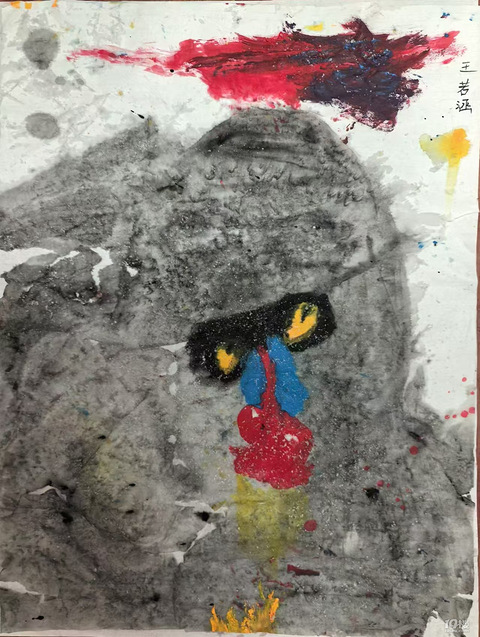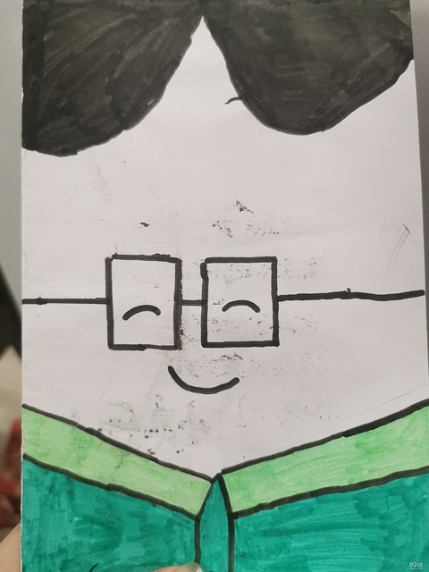 下午学校因为台风提前放学。妹妹就去上了画画去了。结束后拍了照片发群里。乍一看黑乎乎的。我以为画的猩猩。后面老师解释说今天画的是山魈。确实这就有点形似了。