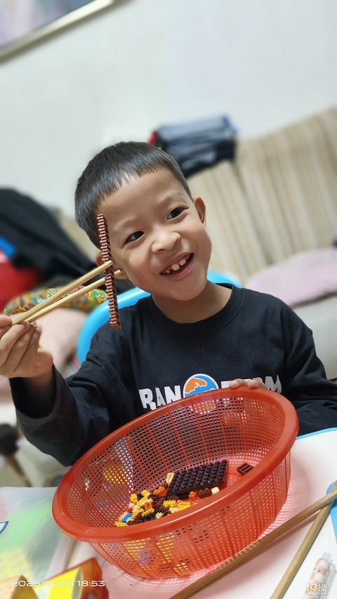 昨天晚上小阮吃完饭,过来给我展示筷子的使用妈妈,你能夹起积木吗?妈妈,你能夹起弹珠吗?夹了2颗我就累了,还是得看年轻人[ej=1F602]
