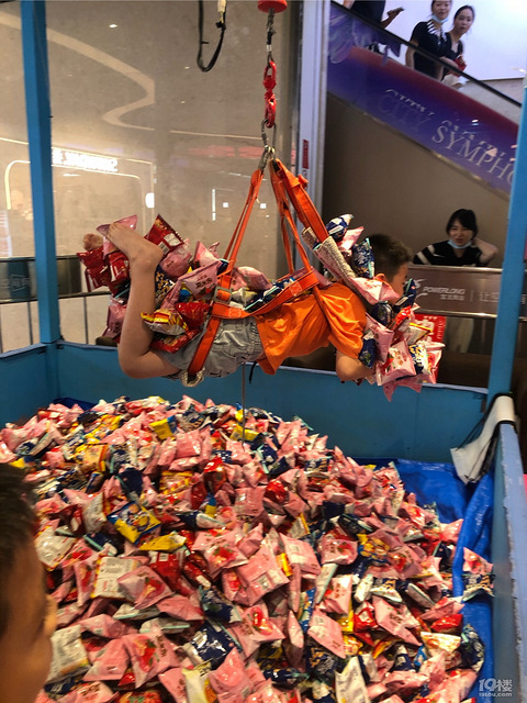 在宝龙地下一层,看到抓零食机,1.2米以上49元一次,1.2米以下39元一次,生意还挺好,看热闹的人多,尝试的人也多。能不能赚回来,大家不关心,估计就是体验下图开心,之前在售楼部也看过类似的,特能吸引小孩。@台州小淘气