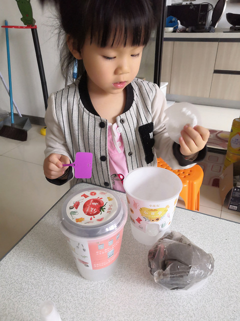 周日下雨没出去玩,把前几天让爸爸去19楼领的趣味盆栽拿出来种上。拿到盆栽一脸好奇,小嘴不停地碎碎念:这是什么呀,这个怎么种啊,小铲子要不要用啊,我自己来我自己来。[ej=1F602]按照说明书一步一步做好之后,娃说:妈妈,我一定会种出你最爱的番茄的,那我就坐等好吃的了[ej=1F604][ej=1F604]