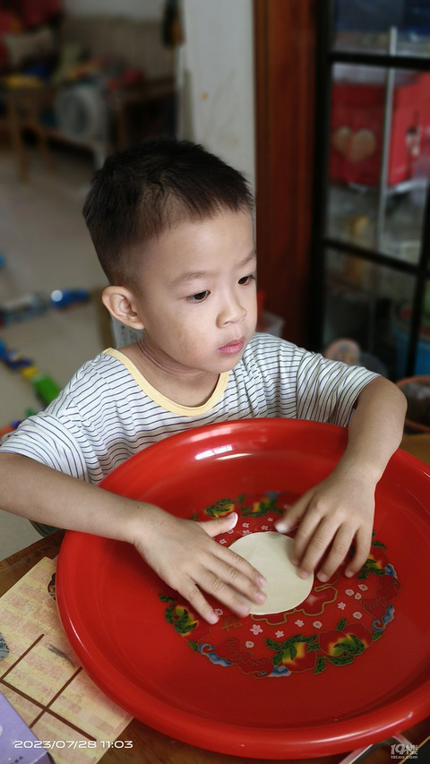 今天中午吃饺子所以今天早上要包饺子小阮得知后,很积极地参与进来奶奶在讲解操作步骤,先认真听讲可以开始操作了对折之后,一定要捏一捏,捏好之后,检查是不是闭合了效率非常高,一次性摊2张,3张饺皮弄得跟流水线一样[ej=1F602]我说:这可是福气饺子呀,来拍个照超级配合的饺子高手,出镜啦[ej=1F60D]这个形状,你觉得像什么?小阮精心设计的图案哦我的目标是:把小阮培养成一个爱下厨的小伙子