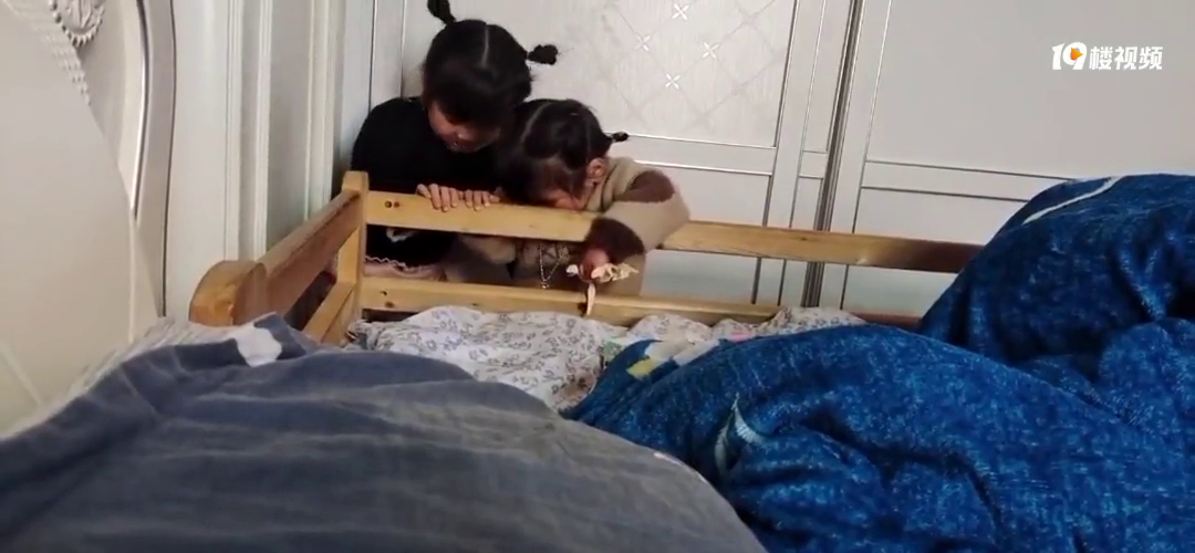 姐姐的侍寝小狗从床头掉下去了。姐姐伸手利落的翻身下床,动作娴熟的钻进床底去捡。妹妹在床边围观一会儿,跃跃欲试,马上付诸行动,结果卡住,不上不下。最后把姐姐当垫脚石下去了。