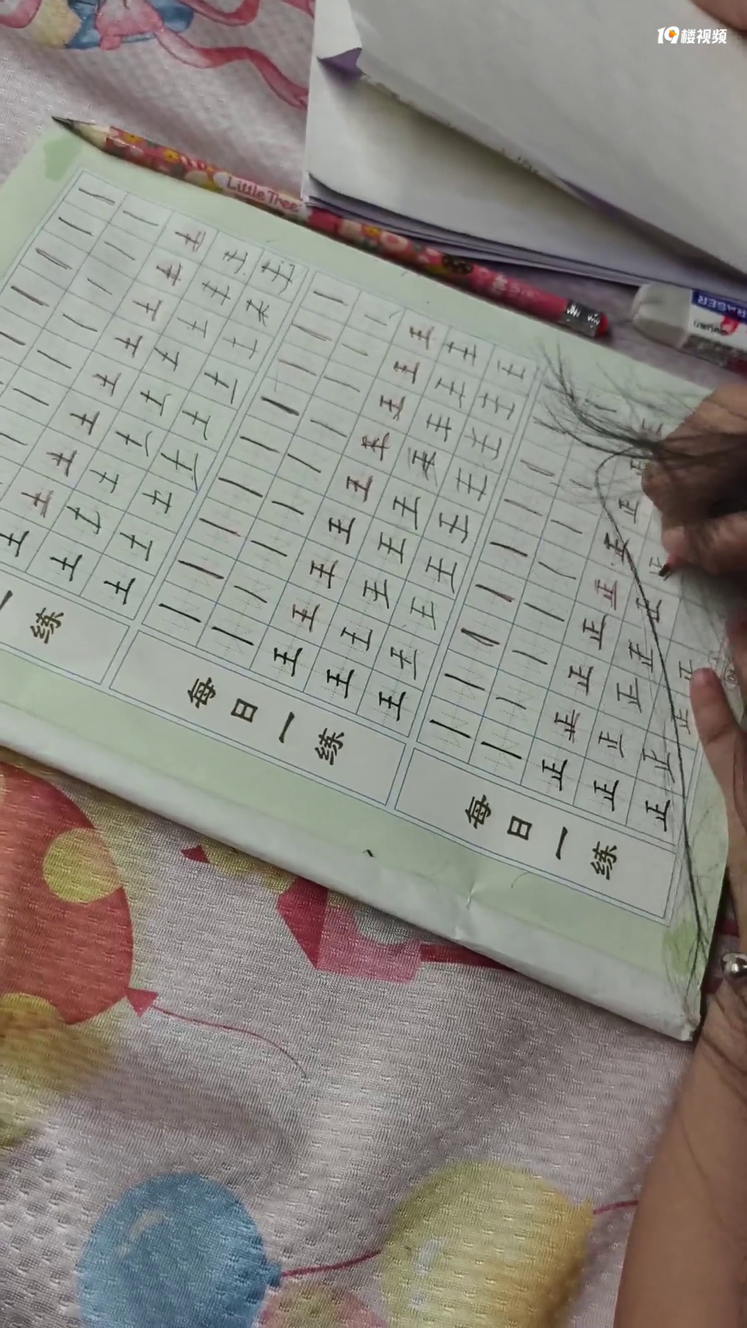 7点半开始写字,妹妹写个子,一会儿姐姐我橡皮嘞?一会儿姐姐帮我拿支笔。写一个字看下姐姐在看什么。姐姐写一个字发一会儿呆,问她在等什么。姐姐说我看下有没有哪个难看的,我改一下。盯着墙壁看哪个字不好看也就厉害的!磨磨唧唧的,看的我都急死了!