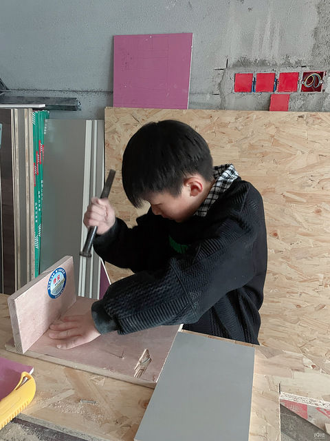第一次带娃来看外公木作,看到外公给自己的房间做了大大的书柜,兴奋的不得了,都已经安排好这一层要放什么,那一层要放什么……娃一个人在客厅敲的咚咚咚的,出来一看却有模有样在敲木板,问他要干嘛,娃说等等就知道[/11笑哭]哈,一把小小的椅子做出来了,笑的眼睛都成一条缝了[/11点赞]非常喜欢外公做的书柜,能装下很多书,也能放下他最爱的乐高(天安门,万里长城)娃今天好能干,还帮我打扫,让我休息[/11龇牙