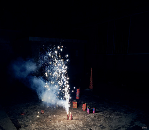 在能打烟花地方看烟花,娃也壮着胆子看,她说水母烟花最好看。
