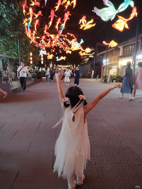 最近临海新开了瓦子集啤酒游园会,其实就是宋韵的美食节吧。本着爱凑热闹的性格,说走就走。这里夜景挺漂亮的,有很多可以拍照打卡的装饰。不知道是不是去晚了,没看到有什么表演。在这里,有交子务可以用钱兑换交子,10元换一百贯,转头就去边上押大小了,结果还没捂热的交子就没了,这博弈的乐趣是一点没享受到啊[/11大哭][/11大哭][/11大哭]连输三轮后,娃怎么也不让她爸爸再押了,扯着就往外走,还是看看风景