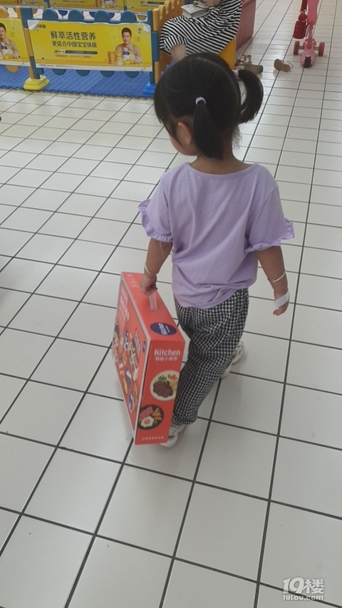 最近生病了,那天要我带她去超市,进去在儿童衣服区看了看,还有模有样的给自己挑衣服呢!不过没买然后就看到了玩具区,给自己精心挑了个玩具,人家拿着就走,老母亲看在她生病的份上不和她计较,满足她!