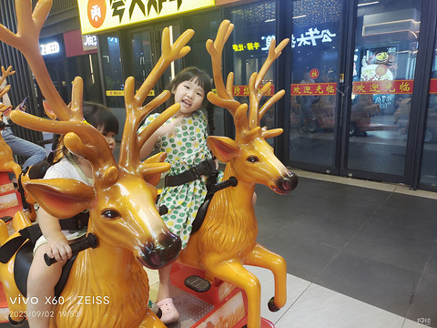 晚上带娃去吃必胜客的披萨了,吃完商场逛一逛,妹妹发现那边墙边停着一排鹿。跑的飞快。收费可以骑鹿跑一圈,可能此商场人气不高。收费的人都不在。只能坐着感受感受,但妹妹也很快乐。从第一只开始骑,一只一只骑过去。乐此不疲。化身骑鹿而来的少女