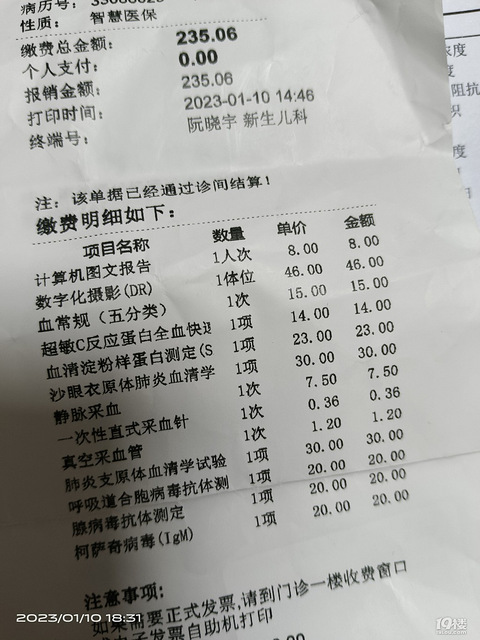 小阮的咳嗽(只是在激动的时候那么二声咳嗽)奶奶说:都不看医生,万一严重了看他天天忙着开心,哪里会严重既然奶奶担心那就去医院检查医生真的是一点都不客气先来235的检查,又是拍片,又是抽血小阮那是轻车熟路,相当配合报告出来得也很快,接着是开药开了178元的药,让我惊讶的是那从来没喝过的咳喘灵口服液那么贵一次喝三支,一天三次,8次解决120元[ej=1F602]好吧,但凡去医院,大家都不计较钱花钱买放心