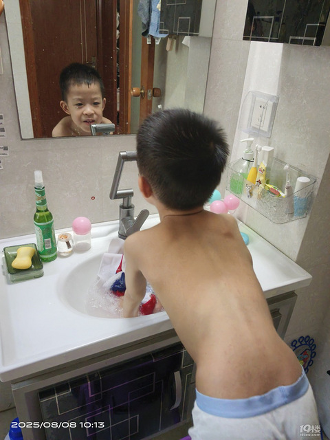 吃完早饭,喊小阮洗衣服,前几天说自己膝盖还疼,就代劳了昨天就活蹦乱跳的啦!今天当然该自己干活。经过之前几次把衣服弄湿的经验,光着膀子就开干,男孩子嘛,夏天在家,穿个小裤衩就行[ej=1F602]还发现自己这件红色T恤会褪色,我说:没有白色衣服在,这么点褪色没事。他想起《小猪佩奇》的猪爸爸的白色衣服被另外褪色衣服染色的情节,给我把这个故事讲了一遍。我建议:下次鲜艳颜色的衣服不知道会不会褪色,可以单独