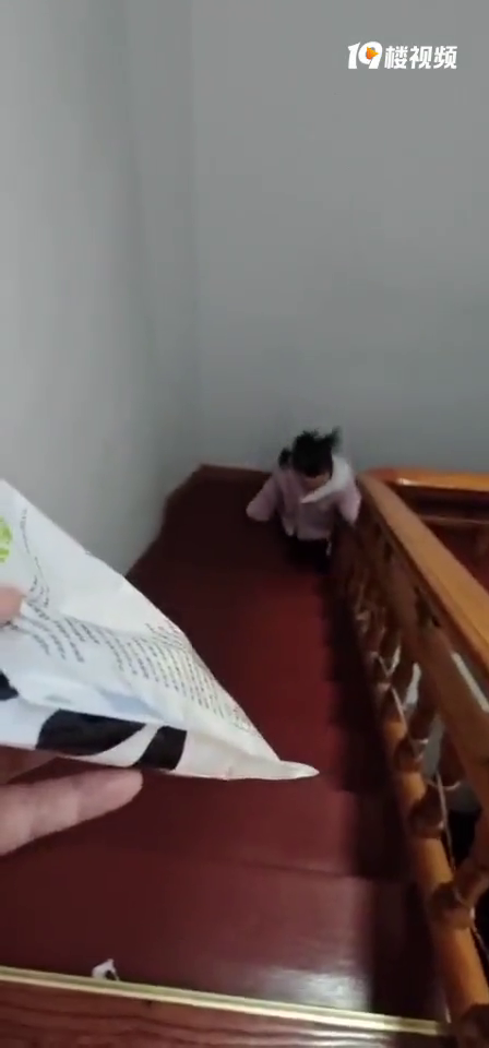 妹妹要自己爬楼梯,到了二楼到三楼的平台,妹妹就开始摇摆不定,又想上来,又想下去二楼后面玩。拿出了零食一诱惑,妹妹上来那叫一个快。一上来就坐下来从袋子里扒拉吃的。