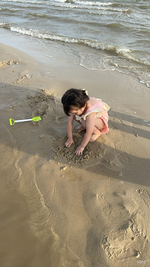 因为生了二胎,正好赶在老大读幼儿园前可以再带她浪一下。和哥哥一起玩沙子,看她来个女蜗捏人因为老二太小了,不适合带出来,索性丢给外婆。那天风很大,浪很大,我的公主不敢坐她的小鸭鸭被海浪推着