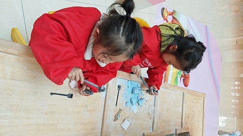 第一次体验烧箔文化,感觉还挺好玩的,金箔纸在熨斗的加热下,颜色会变,画好模板后,用胶水贴上去,再用毛笔刷,金光闪闪的画,女儿很开心说很好玩@台州小淘气