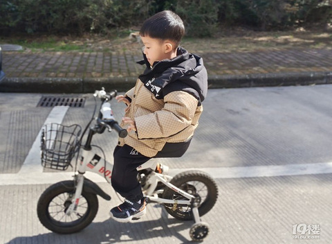 这个还用着辅助轮的男孩子在感受双放手的技巧[ej=1F602] 当然,加速骑行的时候,还是要握牢把手的骑着自行车,带着他18个一元硬币的巨款来超市采购年货[ej=1F604]