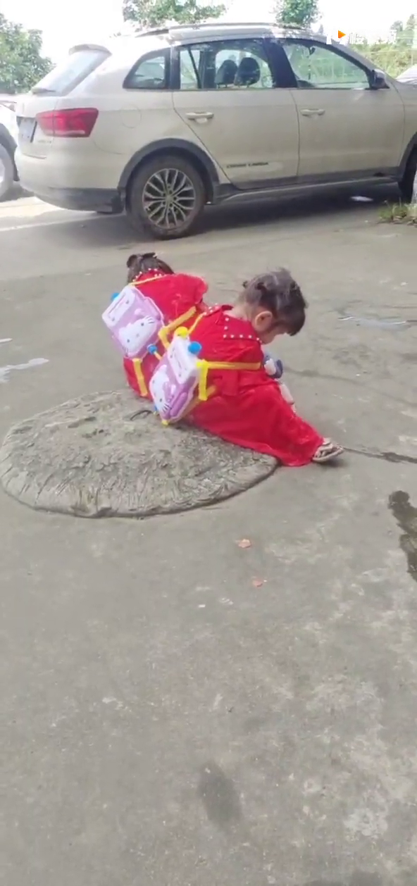 上午我在洗衣服。妹妹跟在旁边玩水,姐姐提着水枪来灌水,然后姐姐就带着妹妹坐在门口爷爷搞得大水泥饼上玩,终于能好好洗衣服了。唯一的坏处就是要过一会儿喊一下,怕乱跑