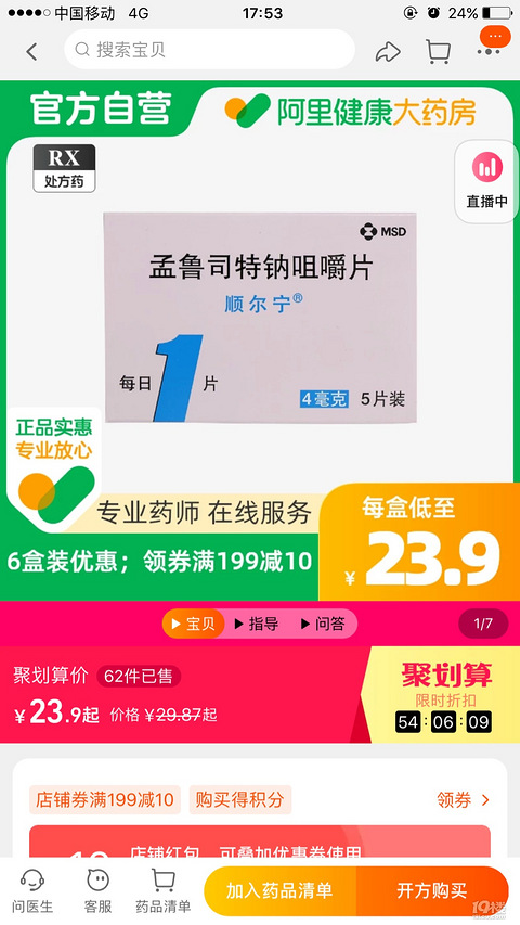 不换不知道,一换吓一跳市立医院开的孟鲁司特钠咀嚼片是国产的医保后自己就付了2块多吃完了,今天去中医院开,医生说中医院没有国产的,去医院外的药店买付了36一盒,2盒72当时也没想到淘宝看看现在打开淘宝,比药店便宜点,跟国产比还是贵很多很多呀[ej=1F602]价格是翻倍,药效也会翻倍吗?这样的情况,怎么选呢[ej=1F625]