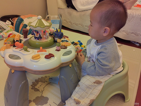我看他自己在研究游戏桌,好感慨啊 要是以后都这么乖乖的爱学习多好啊,现实可是很打脸的,他就坐了两分钟就跑了。