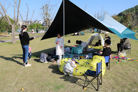 趁着春日好,约上大伙去野餐吧~可以给小朋友们准备一些简单的玩具,增加趣味性。搭好我们的帐篷,铺几块垫子,摆上我们的零食水果,春日户外Party开始啦! 爸爸们把懒人沙发“吹”起来 小朋友来舒坦~ 来吧,该做游戏啦~(一)抓尾巴大人小孩都有一件衣服,可以单向抓也可以互抓。大朋友小朋友都运动起来~ (二)弹力对接球 还有风筝呀,足球呀,飞盘~等等~哇,看到一个超炫酷的大型泡泡机,吸引了好多小朋友抓泡泡
