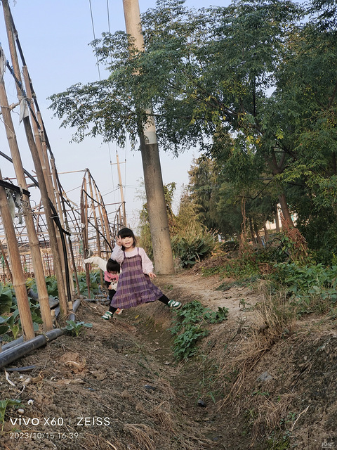 外婆说去挖几个芋头。两个小能手怎么能不跟去。我去地里一看,姐姐在地那头往水沟扔石头。妹妹倒好直接坐地里,一边玩泥巴,一边摘芋头叶。衣服那叫一个脏,关键是人家玩的那叫一个开心[ej=1F604]
