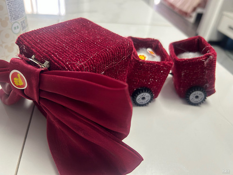 能看出来这是啥吗?本来想做个圣诞风的小火车,可是找不到有关绿色的布或毛线团。又因为时间比较紧[ej=1F602]随意拼接了,让孩子带去学校好交差[ej=1F602]