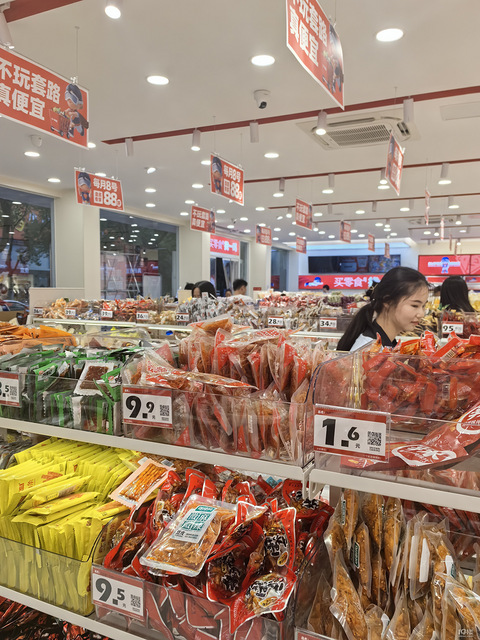 女儿喜欢逛零食店,先是喜欢老婆大人,现在喜欢赵一鸣了,首先赵一鸣有6间店面很宽敞,再是到晚上的时候灯光特别明亮,品种也多,最后袋子是免费的不花钱,哈哈哈,小朋友和大人都喜欢吃零食! 好喜欢逛零食店啊