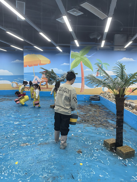本来以为是可以摸大鱼的结果是来捞小鱼的娃大了,没有这么大的渔夫服了只能穿雨靴结果没捞多久裤子就湿了虽然看着有点无聊娃捞的还是挺开心的@台州小淘气