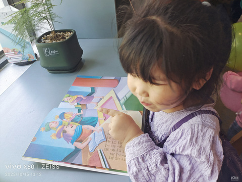 来到图书馆,妹妹也开始认真了,拿了本绘本看图说话[/11大笑]虽然不会,但我很认真。一页看完翻下一页。态度绝对Ok,我说这是国王,妹妹说这是别人[/11笑哭]他不听话躲在角落哭[/11捂脸]王后来安慰他,妹妹说哭起来妈妈来哄他了,这理解能力杠杠的
