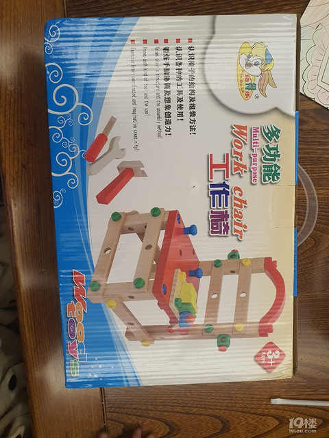 上个月的带娃中的,我女儿一看有玩具太开心了,进了家门就要我拆开~就开始在那里各种组装这个玩具质量超好,很重的,是木头的,但是都很光滑,装好还可以坐一坐~