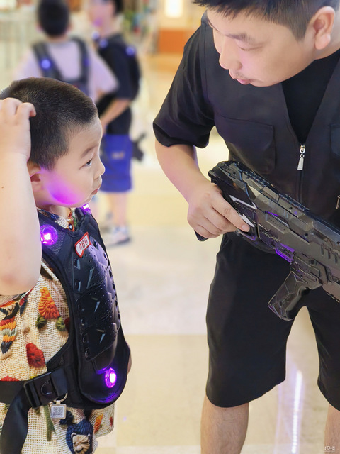 之前秒杀到了一份镭战大联盟的体验。听从指挥,换好装备,拿好枪。看这样子还有模有样的[/11偷笑][/11偷笑][/11偷笑]。游戏开始,这小家伙就跟疯了一样。冲冲冲,哒哒哒,我打打打打。。。。啊啊啊啊啊。。。。满屋子都是他这大嗓门,真的太疯狂了。游戏结束看他满头大汗的样子就知道他玩高兴了。出来的时候还一个劲的说“妈妈这太刺激,太好玩了,我刚打中2个人,我刚刚。。。。。”(此处省略500个字。。)这