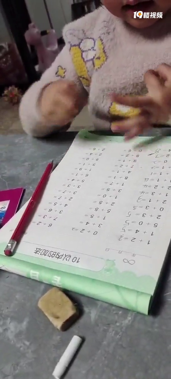 姐姐下午做10以内的加减,就连一加一,零加几等于几都需要手指头掰一掰。就这样掰都能数错,做对了跟捡钱了一样开心,一说再数一边,就有点呆愣愣的啦。