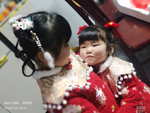 在一声声鞭炮声中,姐姐妹妹早早醒来了。爸爸一大早就下楼来干活了,我一下来,妹妹说妈妈,爸爸把你的鞭炮打了(昨晚我打的关门炮)妹妹新年告的第一状竟然不是因为姐姐打她。姐姐第一件事是跟外婆说新年快乐。然后上演姐妹情深的戏码。