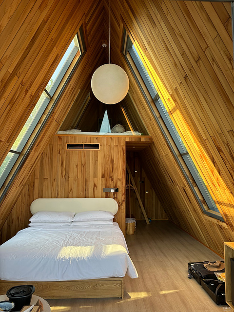 为了带娃过一个有意义的国庆,功课从广州长隆做到湖州龙之梦,最后选择了南通森迪野生动物园。其实最先吸引我的就是南通森迪部落树屋的三角树屋,感觉娃会很兴奋,很喜欢。国庆的房价并不便宜,好在包含了两大一小的动物园门票冰雪世界门票。从温岭动车站出发,到达南通西站是下午两点多,打车直奔森迪,到接待中心登记住宿后,坐着接驳车到达了我们的部落树屋。整个园区还是非常大的,坐接驳车都坐了20分钟。初见树屋 不出所料