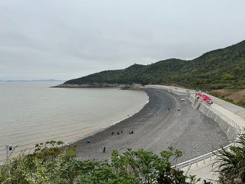 说要去沙滩,给他带到了乌石滩,兴奋的带着水桶铲子下来,发现全是石头,铲子也没啥用,一下子就扔一边了,刚下来就把鞋子裤子都弄湿了,扔石子扔了很久,也是相当开心的。这地方不用门票的,上面也看有人带了烧烤的东西在烤,石子滩上也有搭帐篷的,还是带个野餐椅比较好。有一些年轻的女孩子在这边打卡拍照的,据说阴天和下雨天比较出片,确实石头湿了会好看很多。就导航到日岙村后沙黑鹅软石石滩,车子能直接开到边上的。
