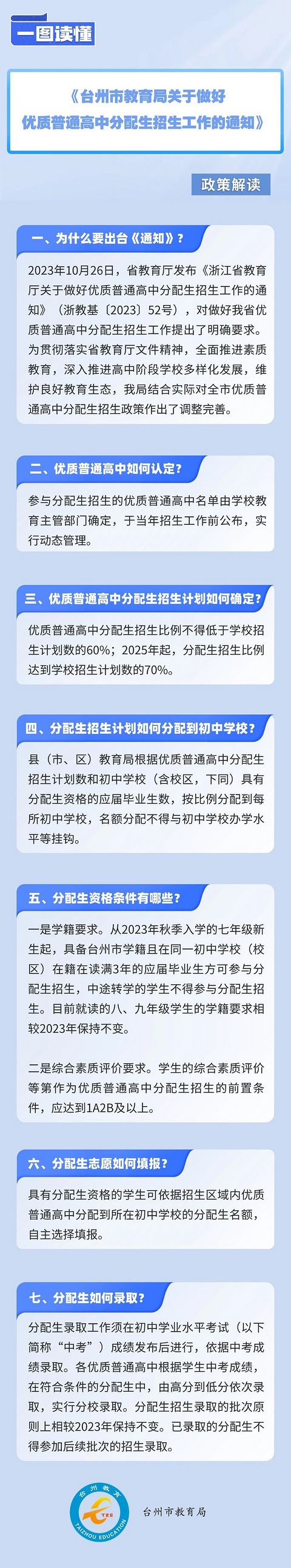 台州市教育局发布做好优质普通高中分配生招生工作通