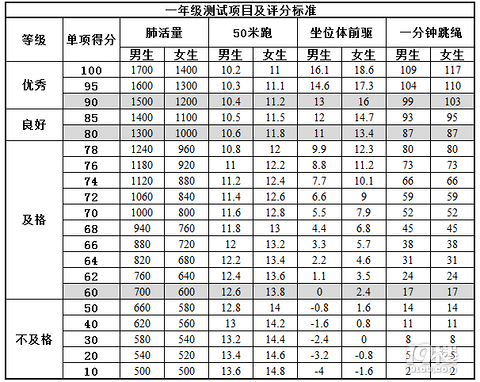 一年级测试项目及评分标准,看来跳绳要从幼儿园学起了~