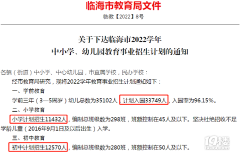 临海市2022学年中小学、幼儿园教育事业招生计划的通知