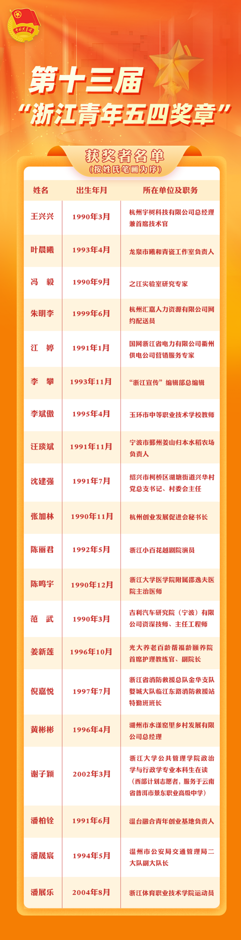 为充分发挥青年典型模范带头作用,彰显浙江青年坚守理想、笃行实干、赤诚奉献、奋勇争先的昂扬精神面貌,更好示范引领广大青少年牢记嘱托、建功立业、挺膺担当,共青团浙江省委、浙江省青年联合会决定,授予20名同志第十三届“浙江青年五四奖章”。其中,玉环市中等职业技术学校教师李斌傲入选。 李斌傲,1995年4月出生,玉环市中等职业技术学校教师,现任新疆建设兵团第一师阿拉尔职业技术学校援疆教师。 他是新时代职业