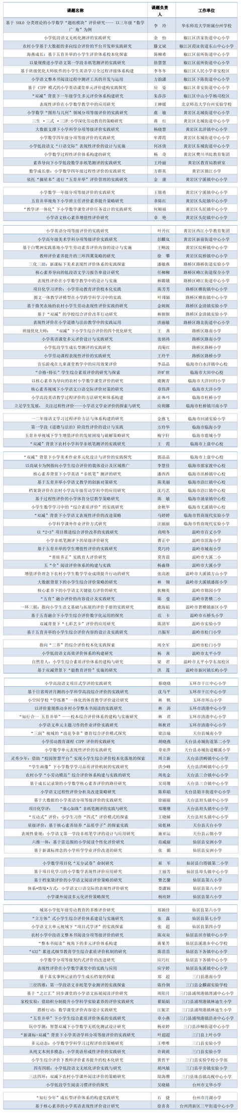 2022年台州市小学生综合评价改革专项课题立项结果公布