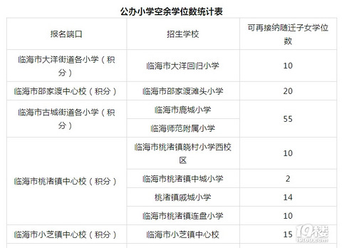 根据《2025年临海市随迁子女积分入学实施办法》要求,我市分别于6月24日—6月26日、7月5日组织进行了两次随迁子女积分入学报名。现将尚有空余学位的公办义务教育学校予以公布,凡未被其他学校录取的符合条件的随迁子女,可以跨镇(街道)选择有空余学位的学校进行报名。 报名时间:7月19日6:00—22:00。 报名办法:登录浙江政务服务网或手机APP“浙里办”,进入“临海市随迁子女积分入学(小学)”