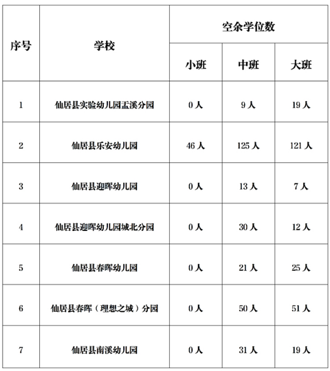 仙居县2025秋季城区公办幼儿园第二次空余学位数公布!