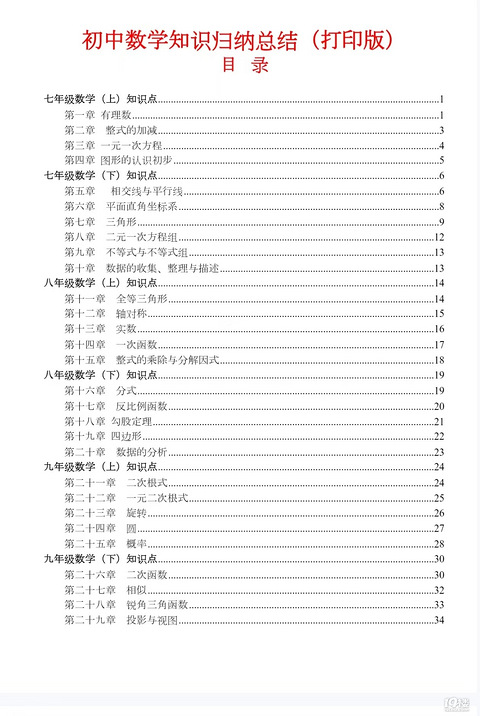 给各位家长整理的初中数学知识归纳总结