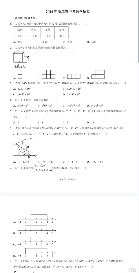 2024年台州中考卷(数学)